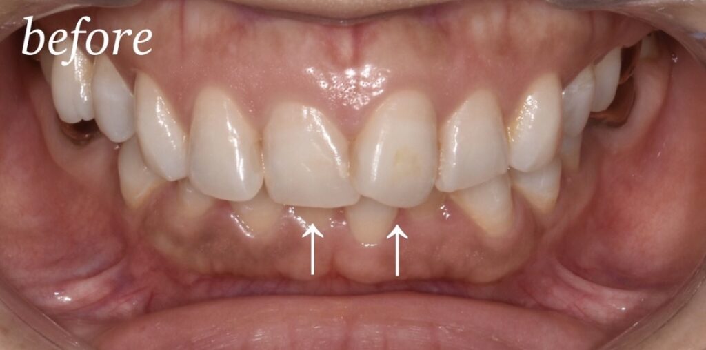 前歯2本を削りセラミックを被せ歯並びを自然に美しく改善されました。