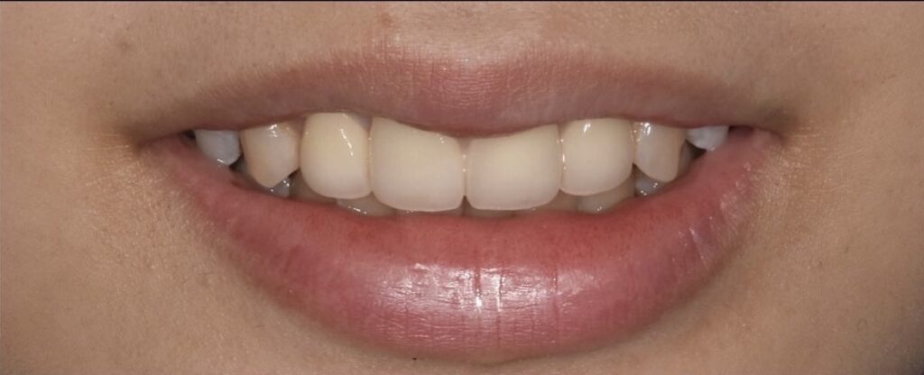 昔入れた被せ物の色味が気になる、歯ぐきとの境目が黒く見える、こちらのお悩みでご来院された患者様。セラミック治療できれいに改善されました。