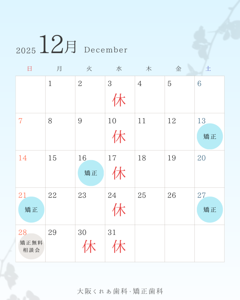 さて、12月の診療日・休診日・矯正日についておしらせいたします📢
