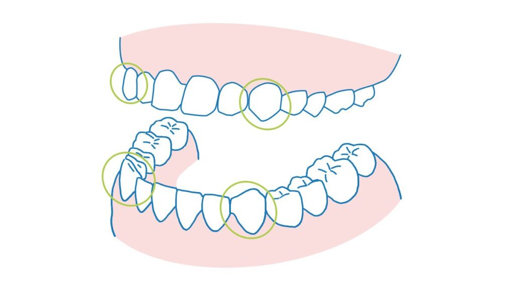犬歯は食べ物を引き裂く役割があり、噛む力を支える重要な歯です。