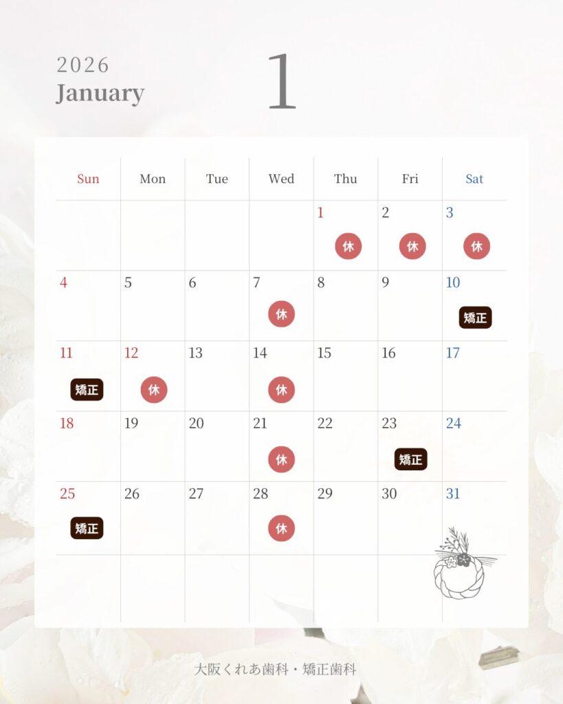 さて、2026年1月の診療日・休診日・矯正日についてお知らせいたします✨