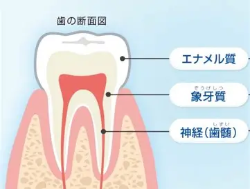 歯の一番外側には「エナメル質」という白く透明感のある層があります。