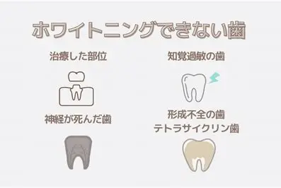 「ホワイトニングをすれば歯はしろくなる」と思わればちですが、実はすべての歯が白くなるわけではありません。